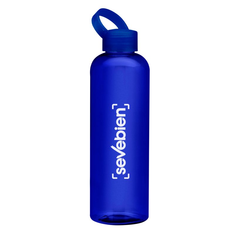 Ø 7 x 23 cm. Capacidad 750 ml. Peso de la botella: 70 g. Material PET. Botella de plástico de colores translúcidos. Tapa a rosca con asa en colores translúcidos idem botella. Contiene anillo de silicona antiderrame.ATENCIÓN No utilizar con bebidas gaseosas ni líquidos calientes. / El manejo de este producto es delicado. / No exponer al sol y temperaturas altas por tiempo prolongado.