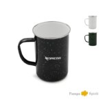 Taza esmaltada de acero inoxidable 304 con acabado en hierro y esmalte, fabricada con materiales duraderos y resistentes, cuenta con diseño clásico y asa ergonómica que asegura un agarre cómodo, es ideal para disfrutar de café, té o infusiones tanto en casa como en la oficina o actividades al aire libre.