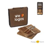 Set de asado con cubiertos y tablas de madera de acacia. Armado a base de madera de acacia y portaobjetos en PU color marrón oscuro. Cuenta con: Cuchillo (23 cm), tenedor (19 cm), dos tablas de 21 x 21 x 1,5 cm, portaobjetos con cierre metálico. Ideal para asados y reuniones al aire libre, ofreciendo estilo y practicidad en la presentación.